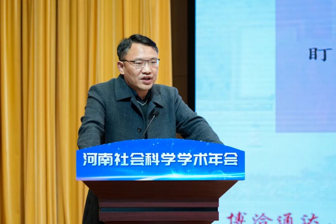 李庚香主席在致辞中回顾了近年来省社科联在贯彻落实省委省政府重大决策部署、发挥新型智库作用、服务经济社会发展方面的重大举措。一是深入开展党的创新理论研究阐释;二是扎实推进社科界有组织的科研;三是积极资政建言服务决策;四是加快推进地方学建设。他指出,全省社科界要以本次年会为契机,扛起新时代新的文化使命,在“学思践悟”上走在前,做创新理论的坚定信仰者;在“服务大局”上显担当,做现代化建设的积极推动者;在“守正创新”上求突破,做自主知识体系的主动构建者,为奋力谱写中原大地推进中国式现代化新篇章作出新的更大贡献。