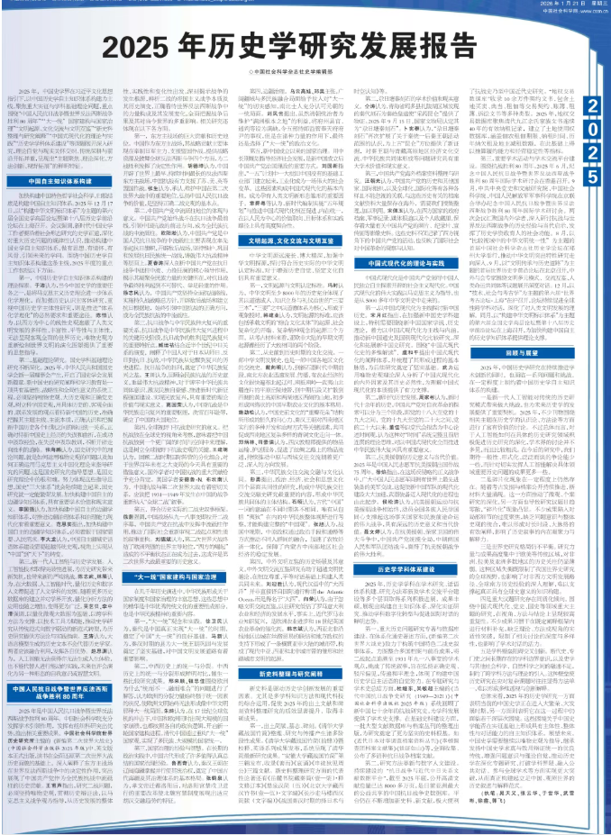2025年,中国历史学研究在持续推进学术创新的同时,也面临一系列问题和挑战,在一定程度上制约着中国历史学自主知识体系的构建。