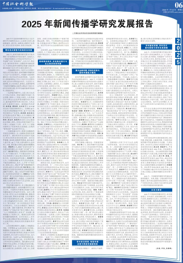 新闻传播事业的现代化是中国式现代化的重要组成部分。2025年,中国新闻传播学界积极回应党和国家重大战略布局,就主流媒体系统性变革、国际传播能力建设、媒介与社会治理等作出探索。